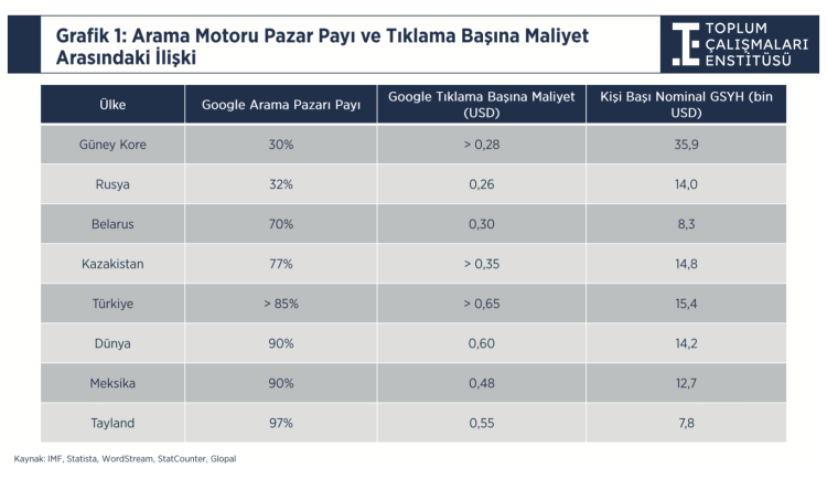 Enstitüye göre dijital reklamcılık ve arama hizmetlerinde rekabetin artması; e-ticaretin derinleşmesi, KOBİ’lerin dijitalleşmesi ve turizm gibi stratejik sektörlerin uluslararası rekabet gücü açısından doğrudan refah artışı sağlayabilir.