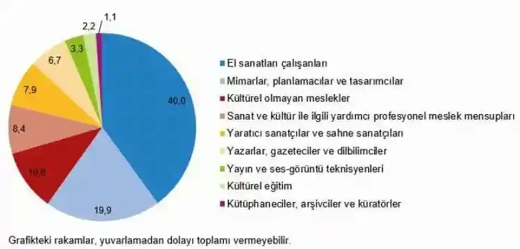 2021 yılında kültürel istihdamın mesleki alanlara göre dağılımı (%) ise şöyle gerçekleşti: 15+ yaş