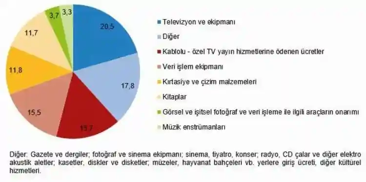 Hanehalkı kültür harcamasının yüzde 20,5'i televizyon ve ekipmanı alımına yapıldı.