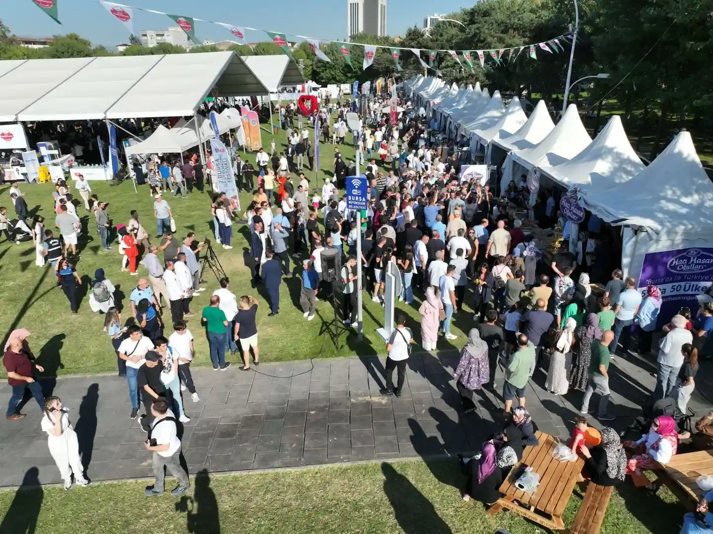 Bursa’da bu yıl 'Yeşil Bursa, Yeşil Gastronomi’ temasıyla düzenlenen 2. Gastronomi Festivali birçok lezzeti barındırırken ayrıca görsel şölenlerle de ön plana çıktı. Birçok restoranın festival ziyaretçilerini etkilemek için lezzetlerini sergilerken kimi işletmeler de görsel şölenlerle dikkat çekti. 2 metrelik baklava kulesiyle görenleri şaşkına çeviren baklava ustalarının yanı sıra peynirli kol böreklerle yapılan Togg’u görenler kendini fotoğraf çekmekten alamadı.