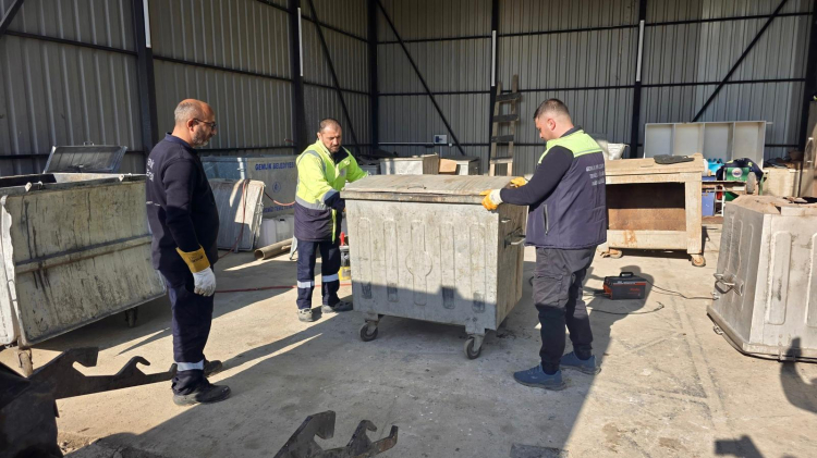 Temizlik İşleri Müdürlüğü ekipleri, yeni konteyner alımı yapmak yerine mevcut olanları bakım ve onarımdan geçirerek hem maliyetleri düşürüyor hem de kaynakların daha verimli kullanılmasını sağlıyor.