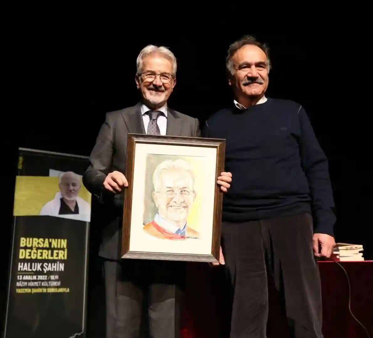 Nostalji dolu anıların paylaşıldığı söyleşinin sonunda Nilüfer Belediye Başkanı Turgay Erdem, Haluk Şahin’e teşekkür ederken, Bursa Erkek Lisesi mezunları adına Hayati Tetik de, Başkan Erdem’e, Enver Dikmen’in çizdiği karikatürünü hediye ederek, Haluk Şahin’i Bursalılarla buluşturan bu organizasyon için teşekkür etti.