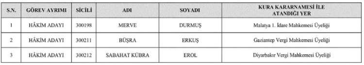 Söz konusu kararda yer alan İdari Yargı'ya ataması gerçekleşen 3 hakim adayının ismi şöyle: