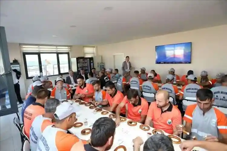 Sabah 08.00’da Fen İşleri ve Park Bahçeler Şantiyesi, 08.30’da da Temizlik İşleri şantiyesini ziyaret eden Başkan Taban, personellerin bayramını kutladıktan sonra onlarla birlikte kahvaltı yaptı. Başkan Taban, bayram tatili süresince sahada hizmetlerin aksamaması adına mesaiye devam eden personellere ortaya koydukları çalışmalardan dolayı da teşekkür etti.