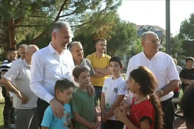 Belediye Başkanı Alper Taban ise “Bugün Yeni Mahalle Tekir Sokakta revize edilen çocuk oyun alanını incelemek üzere bir aradayız. Muhtarımızda konuyu özetledi. Buranın bir hikayesi var. Evlatlarımız muhtarlığa gelerek parkın yenilenmesini istiyorlar, o talebi de muhtarımız bize ulaştırıyor. Bunun neticesinde bölgede yaptığımız incelemeyle beraber burada bir revizyon çalışması başlattık. Bugün de çalışmanın tamamlandığını görüyoruz” diye konuştu.