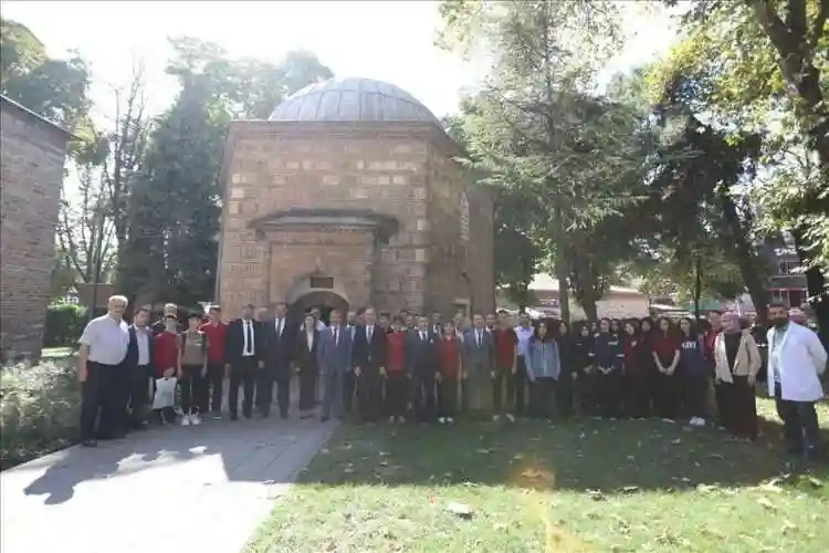 Milli Eğitim Müdürü Ali Doğru ise “2023-24 eğitim öğretim yılının ilk gününde, şehrimizin merkezini oluşturan, adını Fatih Sultan Mehmet döneminde Vezir-i Azam olarak görev yapan İshak Paşa’dan alan İshakpaşa Külliyemizde sizlerle bulunmaktan mutluluk duydum. Bu coğrafyaya hükmeden ve bu toprakların vatan olmasını sağlayan nice kahramanlar vardır. Bu kahramanların her biri, yaşadığı dönemde vatan coğrafyasının her sathında derin izler bırakan eşsiz şahsiyetlerdir. Bu açıdan bakıldığında şehrimizde bulunan gazilerimiz ve şehitlerimizin hikayeleri bizler için çok kıymetlidir. Bizler de bugün öğrencilerimizle yeni eğitim öğretim yılının ilk dersinde Osmanlı Hanedanının ilk şehidi Baykoca’nın türbesinde, bayrağımız için canlarını veren 83 şehidimizin bulunduğu Halhalca İstiklal Şehitliği, 1299 yılında İnegöl’ü fetheden Turgut Alp’in türbesi ve burada bulunduğumuz İshakpaşa Külliyesinde geçmişimizi bugüne getirmeye çalıştık” diye konuştu.