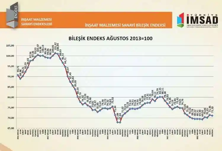 İnşaat malzemesi sanayi endeksi Haziran ayında 71,10 puan oldu.