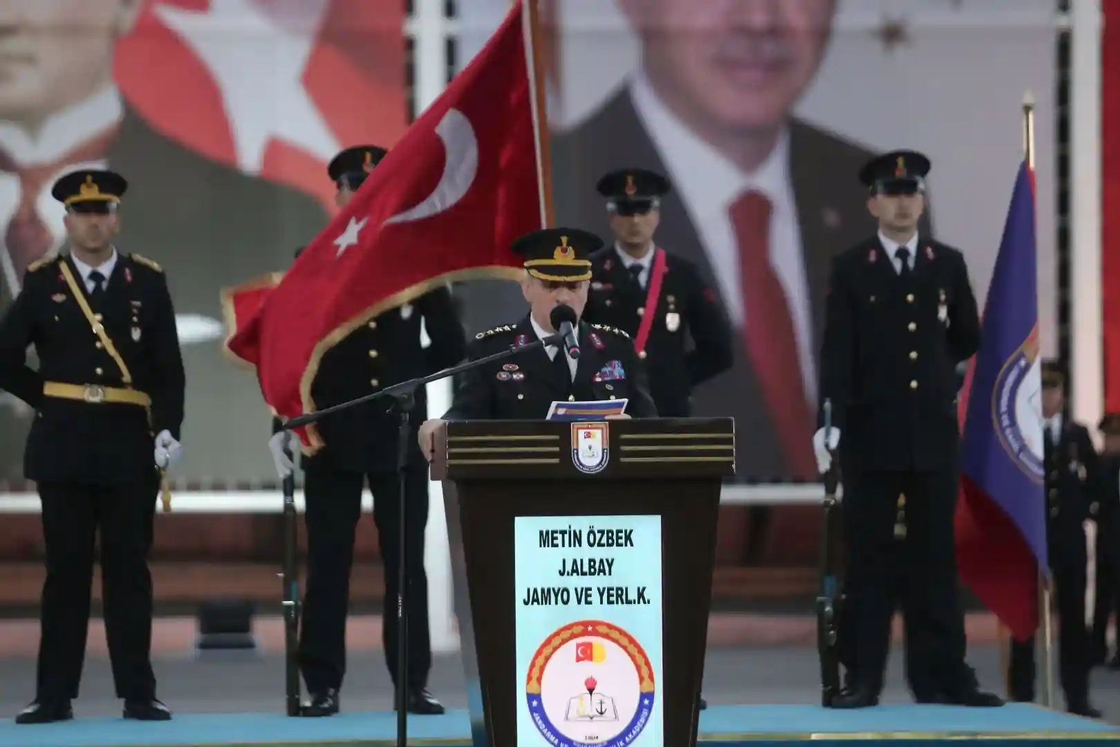 Mezun olan öğrencilerin ailelerine seslenen Özbek, “Türkiye'nin dört bir yanından gelerek güzel ve mukaddes şehir Bursa'mızı ve törenimizi şereflendiren ailelerine seslenmek istiyorum. Beşiğin ardını gurbet bildiği halde, ak kundaklara belediği evlatlarını vatana emanet eden analar, artık fırtınalar okşayacak onların saçlarını. Evlatlarının yüreğini vatan ve bayrak sevgisiyle dolduran babalar, onlar yürüdüklerinde titreyecek dağlar, yırtılacak kara bulutlar, yıldırımlar kıskanacak bakışlarını. Sizin çocuğunuz olarak dünyaya gelen bu yiğitlerin her biri, artık jandarma üniforması giymiş birer vatan evladı. Evlatlarınızın mezuniyeti, onların başarıları için bir dönüm noktası. Şimdi daha büyük hedefler ve sorumluluklar için, yeni bir sayfa açıyorlar. Ülkemizin güvenliği ve refahı için önemli roller üstlenecekler ve sizlerin desteklerine ihtiyaç duyacaklar. Sevgili anneler ve babalar, evlatlarınızı dün olduğu gibi yarın da desteklemeye ve onlara yüreğinize dek sevgiyle sarılmaya devam ediniz. Sizlerin duası ve desteği, onların hayatta karşılaşacakları her zorluğun üstesinden gelmelerine yardımcı olacaktır yüce Türk milletinin sinesine teslim ettiğiniz bu yiğit delikanlılar için, sizlere ne kadar teşekkür etse azdır sağ olun, var olun.” şeklinde konuştu.