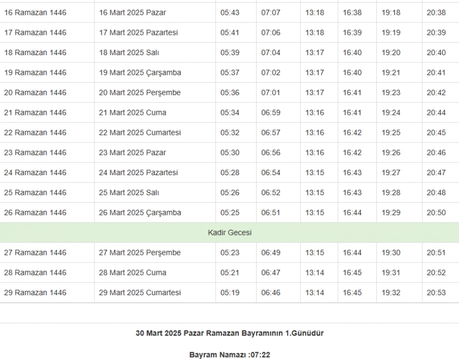 İSTANBUL RAMAZAN İMSAKİYESİ