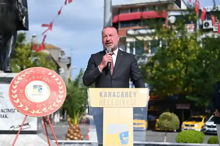 Cumhuriyet Meydanında gerçekleşen tören, saygı duruşu ve istiklal marşının okunmasıyla başladı. Kaymakamlık, Belediye Başkanlığı ve Garnizon Komutanlığı çelenklerinin Atatürk Anıtına sunulmasının ardından, Karacabey Belediye Başkanı Fatih Karabatı günün anlam ve önemini anlatan konuşmasını gerçekleştirdi. Karabatı konuşmasında, “14 Eylül, Karacabey'imizin tarihindeki en önemli günlerden biridir. Bugün, milletimizin kahramanlığı ve özgürlük mücadelesinin simgelerinden olan Karacabey'in kurtuluşunun yıldönümünü coşku ve gurur içinde kutlamanın mutluluğunu yaşıyoruz. Kurtuluş Savaşı'nın zaferle taçlandığı bu anlamlı günde, bizlere bu toprakları vatan yapan başta Gazi Mustafa Kemal Atatürk ve silah arkadaşları olmak üzere, tüm şehitlerimizi rahmet ve minnetle anıyor; gazilerimize şükranlarımızı sunuyorum. Bizlere düşen görev, bu kutsal emaneti korumak ve gelecek nesillere en iyi şekilde aktarmaktır.” ifadelerine yer verdi.