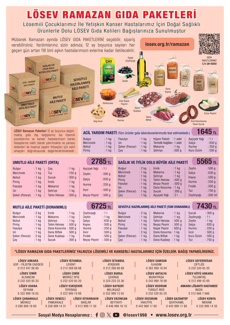 İstanbul’daki Ülker Sports Arena’da gönüllüler ve bağışçılarla hazırlanan koliler, doğal ve sağlıklı ürünlerle donatılırken, Türkiye’nin dört bir yanındaki ailelerin sofralarına Ramazan boyunca bereket katılıyor. LÖSEV, 27 yıldır sürdürdüğü ücretsiz tedavi, eğitim, konaklama, sosyal ve psikolojik destek hizmetleriyle, Vakfa kayıtlı 118 bini aşkın çocuk ve yetişkin hastanın yanında oluyor.