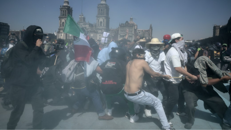 Başkentte toplanan binlerce gösterici, Meksika Devlet Başkanı Claudia Sheinbaum’un yaşadığı Ulusal Saray’ın etrafındaki barikatları yıktı. Polis, göstericilere, göz yaşartıcı gazla müdahale etti. Gösteriye, 1 Kasım’da Ölüler Günü etkinliğinde suikasta uğrayan Uruapan Belediye Başkanı Carlos Manzo’nun destekçileri de katıldı. Çok sayıda kişi, "Hepimiz Carlos Manzo’yuz" yazılı pankartlar taşıdı.