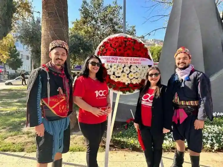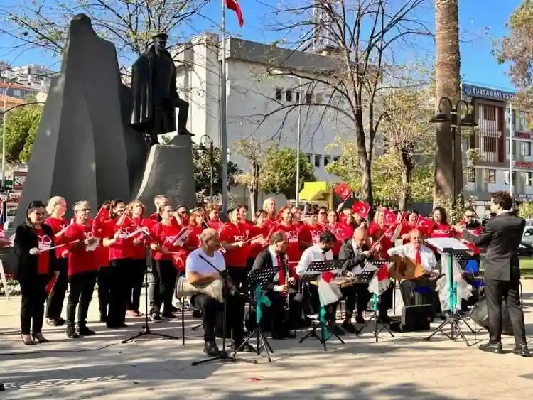 Anadolu İncisi Kültür ve Sanat Derneği bünyesindeki "Meşk-i Huzur Korosu" Cumhuriyetin 100. Yılı etkinlikleri kapsamında Bursa'nın Mudanya ilçesindeki Atatürk Anıtı'nda Atatürk'ün sevdiği şarkıları seslendirdi.