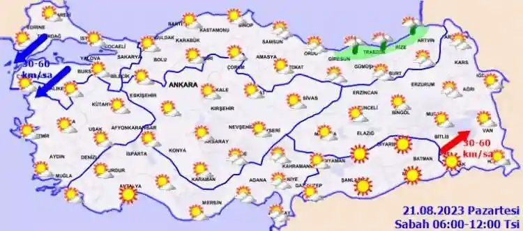 Rapora göre Türkiye'nin kuzeydoğu kesimleri ile Ege ve Akdeniz’in iç kesimlerinin parçalı, yer yer çok bulutlu, Doğu Karadeniz kıyıları ve Orta Karadeniz'in doğu kıyıları ile Doğu Anadolu'nun kuzeydoğusunun yerel sağanak ve gök gürültülü sağanak yağışlı, diğer yerlerin az bulutlu ve açık geçeceği tahmin edilirken, genellikle kuzey, yurdun güney ve doğu kesimlerinde güneyli yönlerden hafif, ara sıra orta kuvvette, Marmara'da kuzeydoğu yönlerden kuvvetli (40-60 km/saat) esmesi bekleniyor.