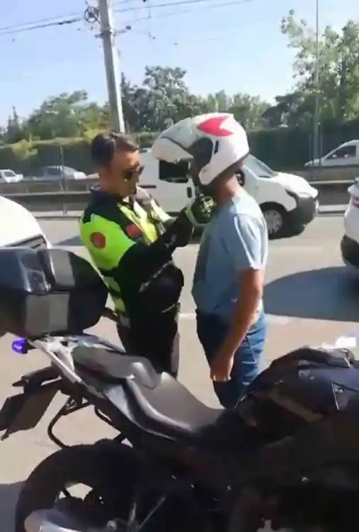 Sırameşeler Caddesi üzerinden geç kalan öğrenciyi alan motosikletli trafik polisi Kapıların kapanmasına dakikalar kala öğrenciyi okula yetiştirdi. Okul önünde bekleyen kalabalık öğrenciye kendi kaskını takarak getiren trafik polisini alkış yağmuruna tuttu.