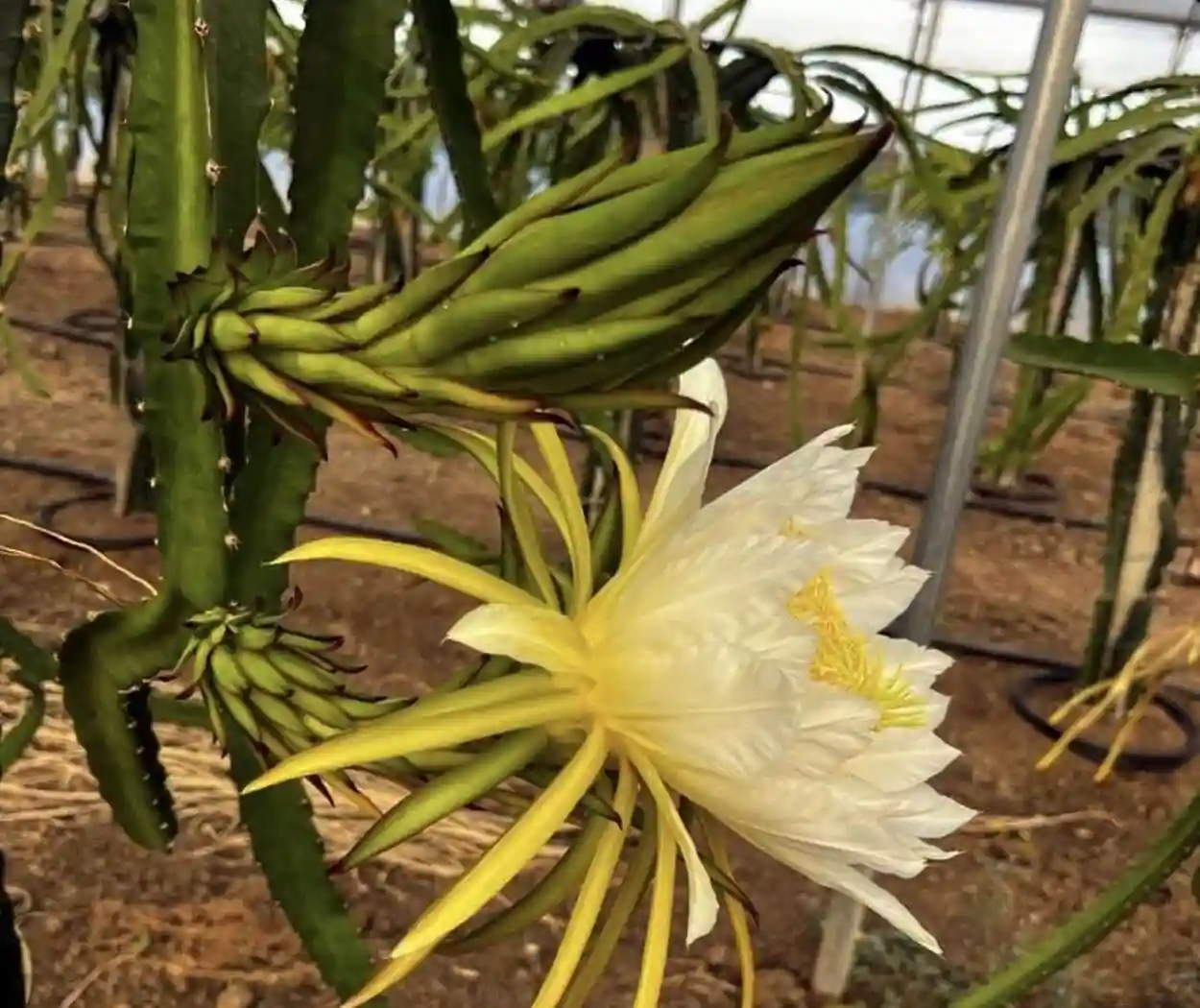 Balabancık Mahallesi Muhtar Ali Ceylan ve Mudanya İlçe Tarım ve Orman Müdürü Ergün Karadağ'ı tesislerinde ağırlayan üretici Yusuf Uçan, Mudanya'nın Balabancık Mahallesinde 1,5 dönüm arazi üzerine kurduğu sera tesislerinde ektiği ejder meyveleri 3 sene sonunda meyve vermeye hazırlanıyor.