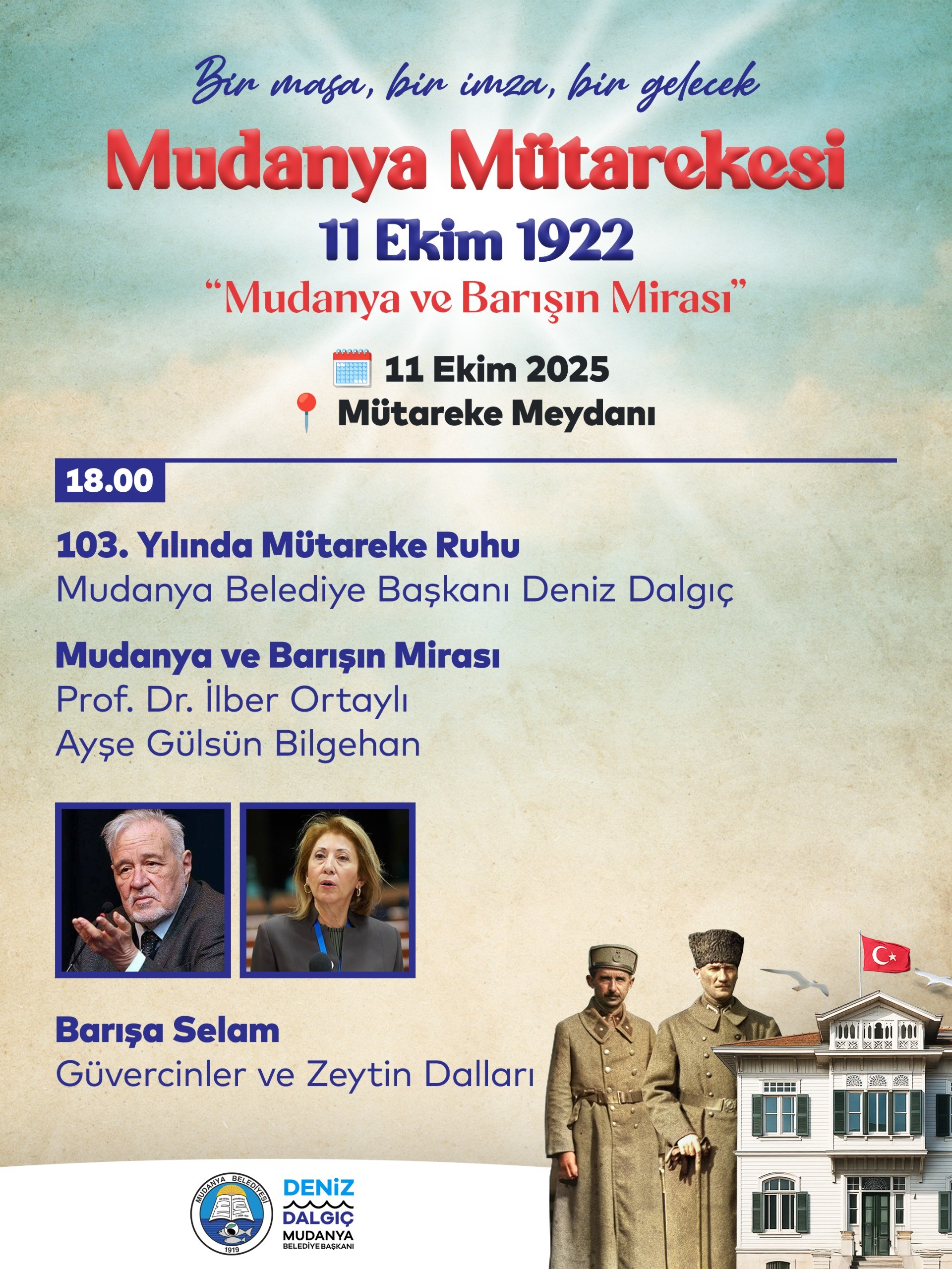 Kurtuluş Savaşı’nın ardından Cumhuriyet’in yolunu açan Mudanya Mütarekesi’nin 103. yıl dönümünde, “Bir masa, bir imza, bir gelecek” temasıyla düzenlediğimiz törenlerde tarihin ve barışın izinde buluşuyoruz.