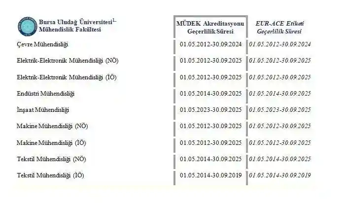MÜDEK tarafından açıklanan değerlendirme sonuçlarına göre BUÜ Mühendislik Fakültesi Makine ve Elektrik Elektronik Mühendisliği Bölümleri’nin akreditasyonları uzatılırken, İnşaat Mühendisliği Bölümü de ilk defa akredite olmayı başardı.