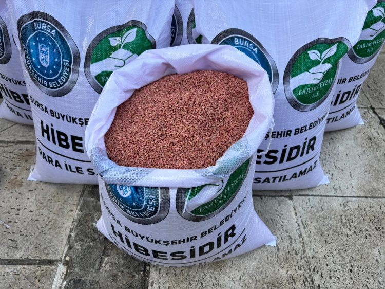 Bursa Büyükşehir Belediyesi, tarım hedefiyle yürütülen kırsal kalkınma projeleri kapsamında çiftçilere tohumluk buğday dağıtımı töreni gerçekleştirdi.