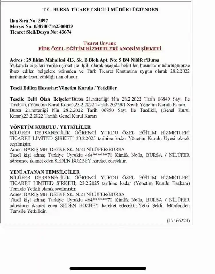 Nilüfer Belediyesi Encümeni, CHP Bursa Büyükşehir Belediye Başkan Adayı Mustafa Bozbey ve ailesine ait Konak Mahallesi’nde bulunan Fide Özel Eğitim Hizmetleri AŞ’ye (Asal Koleji) kaçak ek bina yaptığı gerekçesiyle 44 milyon lira ceza kesildi.