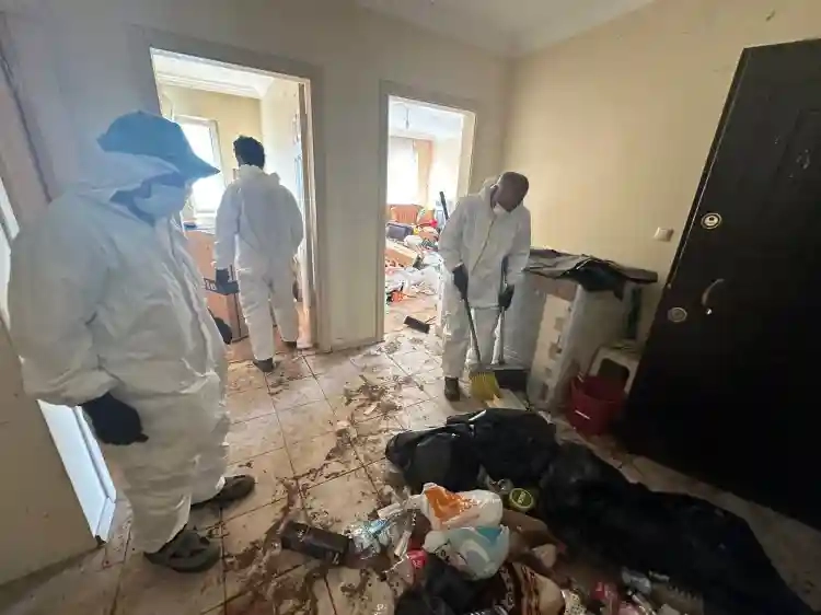 Örümcek ağları ve kirlilik içindeki ev, Nilüfer Belediyesi Temizlik İşleri Müdürlüğü ekiplerince dezenfekte edilerek hijyenik hale getirildi. Temizlenen ev, daha sonra sahibine teslim edildi.
