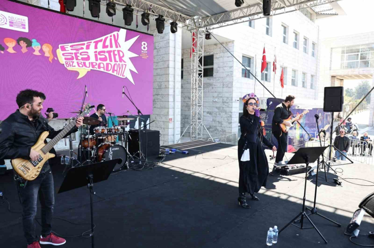 Nilüfer Belediyesi ve Nilüfer Kent Konseyi iş birliğiyle 8 Mart Dünya Kadınlar Günü kapsamında düzenlenen yürüyüşte bir araya gelen kadınlar, eşitlik, barış ve adalet taleplerini dile getirdi.