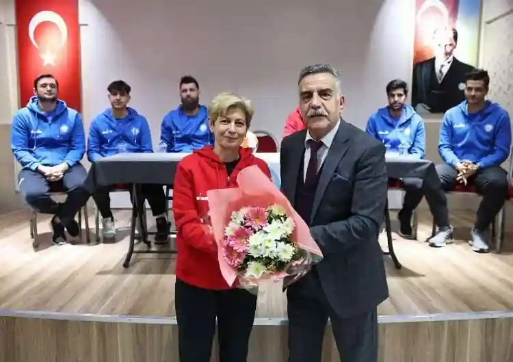 Vahide Aktuğ Ortaokulu Müdürü Rafet Yılmaz da sporcu ve teknik heyete teşekkür ederek çiçek verip başarılar diledi.