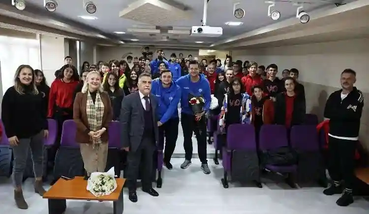 Nilüfer ve Bursa’yı THF Erkekler Hentbol Süper Lig’inde temsil eden Nilüfer Belediyespor Erkek Hentbol Takımı sporcuları ve teknik heyeti Vahide Aktuğ Ortaokulu’na konuk oldu. 130 öğrenciyle bir arayan gelen sporcular sportif kariyer ve gelişimleriyle ilgili açıklamalarda bulundu. Baş antrenör İlknur Kurtuluş, yardımcı antrenör Selim Muti, oyunculardan kaptan Gökhan Şanlı, Aleksander, Batuhan, Ömer ve Mücahit, başarılı sporcu
