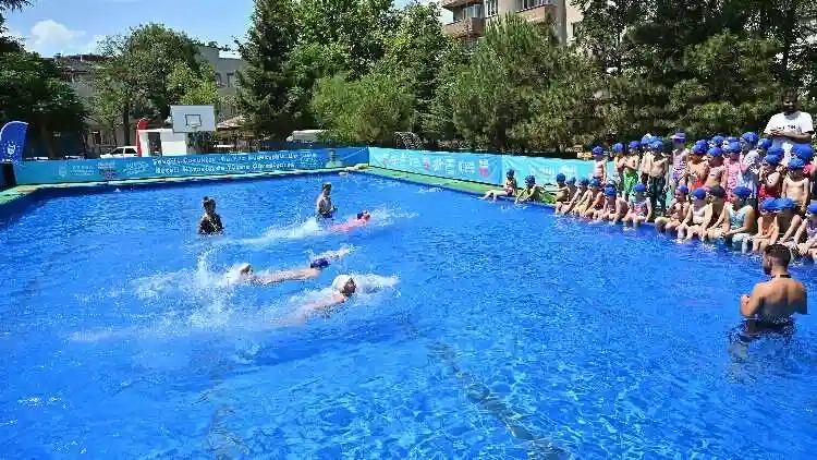 Okul bahçeleri yüzme eğitim merkezi oldu