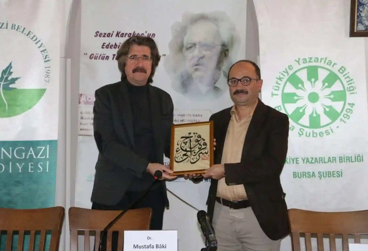 Türkiye Yazarlar Birliği Bursa Şube Başkanı Dr. Mustafa Baki Efe ise bu yıl birincisi yapılan Sezai Karakoç Edebiyat ve Şiir Günleri temasının Sezai Karakoç’un Edebi Mirası: Gülün Tuttuğu Nöbet olduğunu belirterek, “Üstad Sezai Karakoç, hepimize öğretmen, mürşid olmuş bir şairdir. Benzeriyle kıyas edildiğinde dünyada nadir karşılaşılan mütefekkirin adını yaşatmak, aziz hatırasına sahip çıkmak bu toprakların hamiyetperver insanlarının hasletidir. Karakoç adına ne yaparsak yapalım azdır. Bu nedenle bizlere kapılarını açtığı için Osmangazi Belediye Başkanımız Mustafa Dündar’a yürekten teşekkür ediyorum. Programın edebiyat, şiir ve düşünce ortamına yeni bir soluk, derinlik, nitelik kazandıracağından şüphemiz yoktur” diye konuştu.