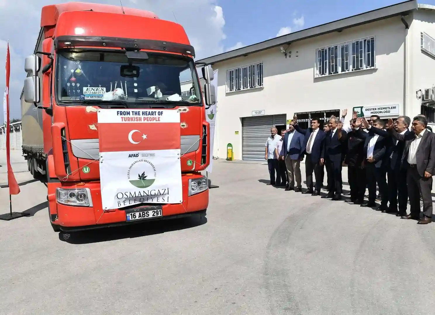Pakistan’da 14 Haziran’dan bu yana etkili olan şiddetli muson yağmurlarının yol açtığı ve milyonlarca kişiyi evlerini terk etmek zorunda bırakan sel felaketine duyarsız kalmayan Osmangazi Belediyesi, içerisinde gıda ürünlerinin yer aldığı bin koli yardım malzemesini selden zarar görenlere ulaştırılmak üzere bölgeye gönderdi. Gıda kolilerinin bulunduğu yardım tırı Osmangazi Belediye Başkanı Mustafa Dündar’ın yanı sıra Osmangazi Kaymakamı Ali Partal, AK Parti Osmangazi İlçe Başkanı Ufuk Cömez ve İl Afet ve Acil Durum Müdürü Yalçın Mumcu tarafından Pakistan’a uğurlandı.