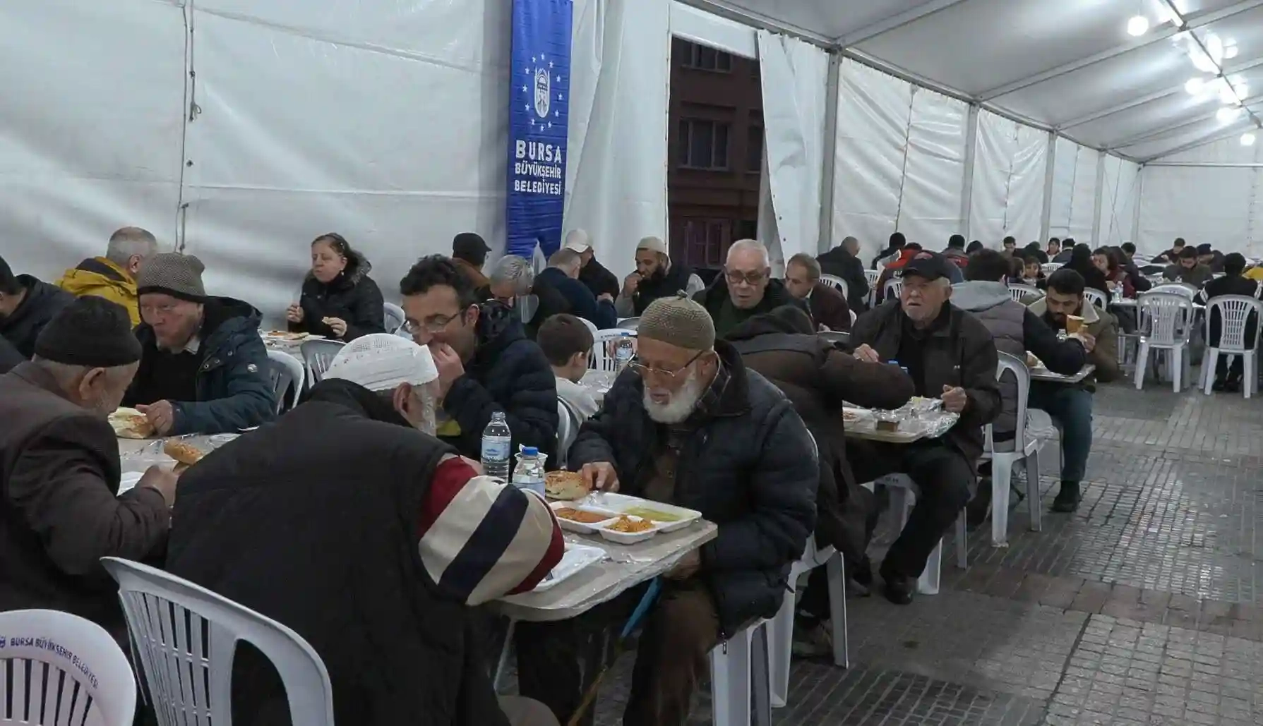 Bursa Büyükşehir Belediyesi her yıl olduğu gibi bu yıl da vatandaşları iftar sofralarında buluşturdu. Fevzi Çakmak Caddesi Otoparkı ve Emirsultan Meydanı’nda kurulan iftar sofralarında her gün 2 bin kişi ağırlanacak.