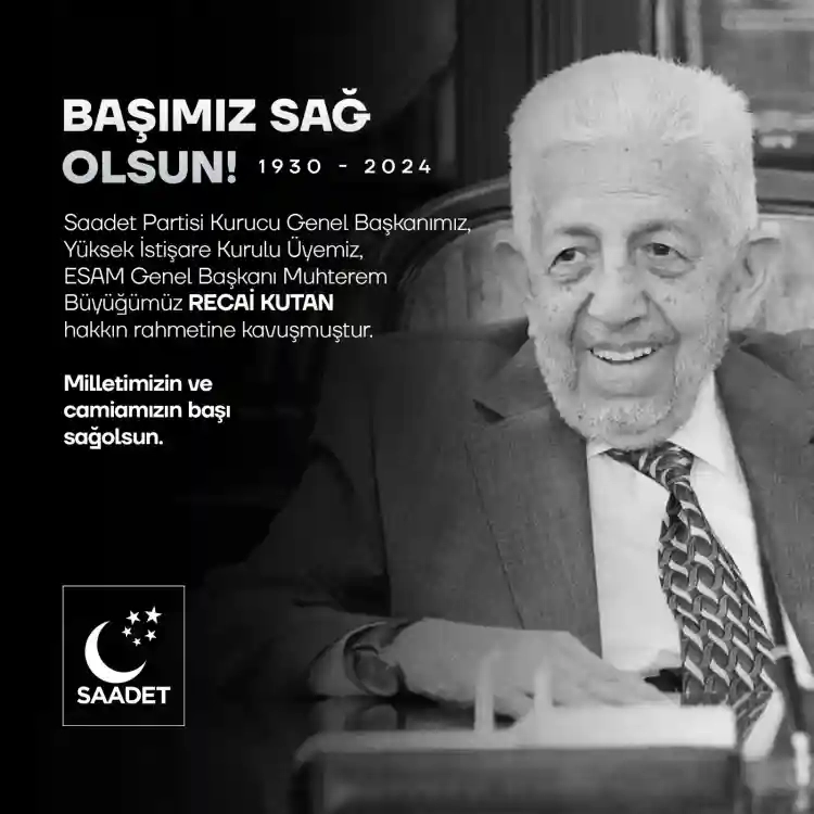 Saadet Partisi'nin resmi sosyal medya hesabından yapılan paylaşımda, Saadet Partisi Kurucu Genel Başkanı Recai Kutan'ın 94 yaşında hayatını kaybettiği duyuruldu.