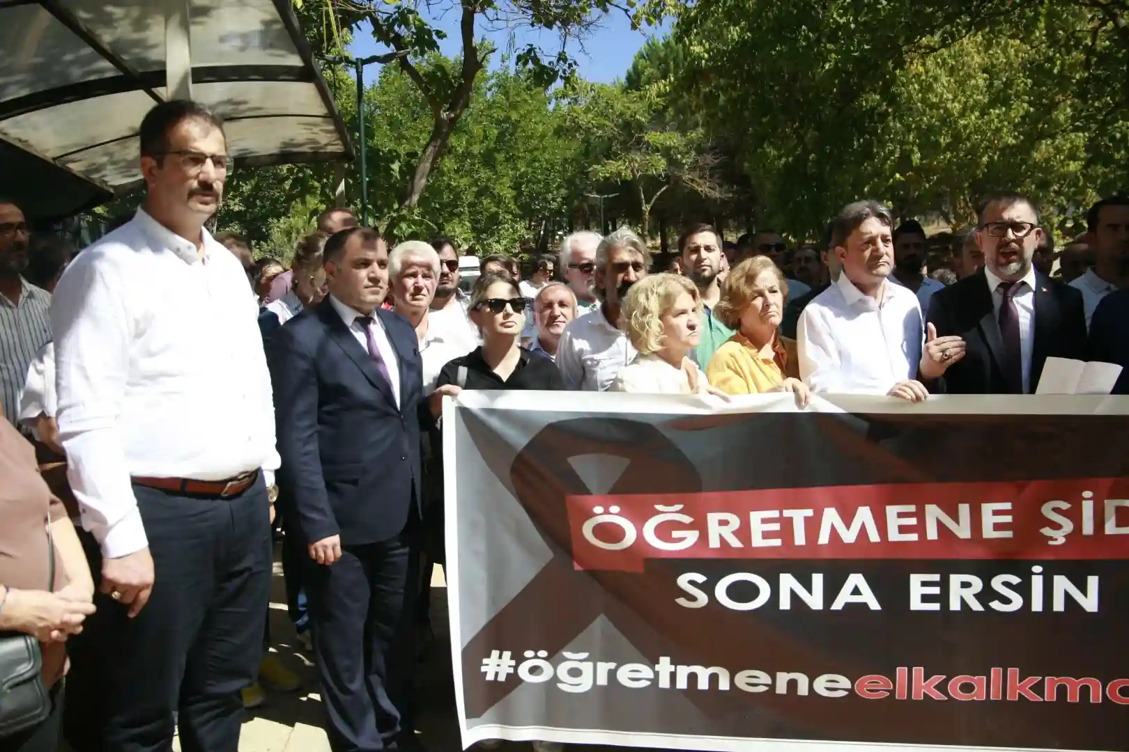 Okul önünde bir araya gelen sendikalar adına açıklama yapan Türk Eğitim Sen Bursa 2.Nolu Şube Başkanı Fatih Gümüş, "Eğitim-öğretim yılının henüz başında bir öğrencinin ablası tarafından darp edilen müdürümüzün yanında olduğumuzu belirtmek ve bu çirkin saldırıyı kınamak için bir arada olduklarını belirterek, değerli okul müdürümüze yönelik bu saldırı aslında bütün eğitim camiamıza ve geleceğe yapılmış bir saldırıdır. Bu saldırı kamu görevlilerini sistemli bir şekilde itibarsızlaştırma çalışmalarının bir sonucudur. Bütün yetkilileri artık daha ciddi tedbir alma konusunda harekete geçmeye davet ediyoruz" dedi.