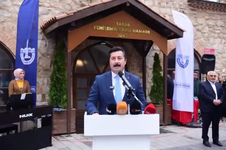 Osmanlı'nın ilk başkenti olan Yenişehir'de bir eksiklik daha son buldu. Bursa'nın Yenişehir Belediye Başkanı Ercan Özel'in talimatıyla tarihi ve kültürel mirasın en önemli sembollerinden biri olan Tarihi Yenişehir Çarşı Hamamı bugün, coşkulu bir törenle hizmete açıldı. Açılış törenine, Başkan Ercan Özel'in yanı sıra, İYİ Parti Bursa Milletvekili Selçuk Türkoğlu, Yenişehir İlçe Kaymakamı Hulusi Doğan, Bursa Büyükşehir Belediye Başkan Vekili Mehmet Aydın Saldız, İYİ Parti Bursa İl Başkanı İsmail Kaya, İlçe Garnizon Komutanı Albay İbrahim Feyzi Büğdüz, siyasi partilerin ilçe başkanları ve temsilcileri ile sivil toplum kuruluşlarının temsilcileri, muhtarlar ve çok sayıda Yenişehirli vatandaş katıldı.