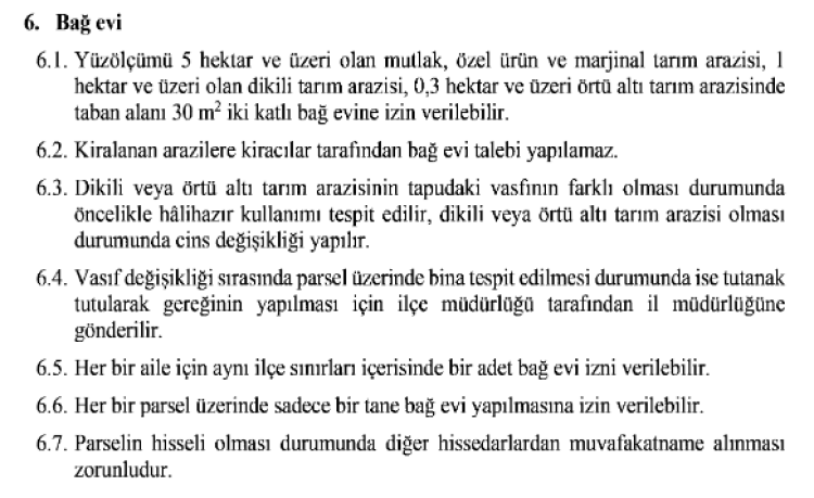 Buna göre bungalov ve bağ evi için kurul izni gerekecek, kaçak yapılar yıkılacak, tarlalar eski haline getirilecek