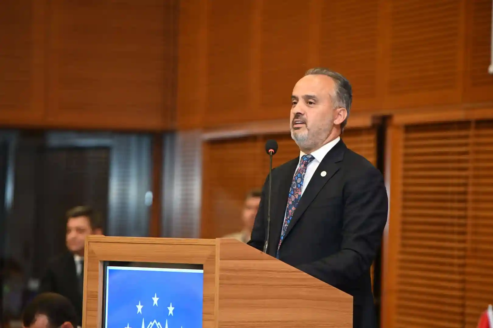 Büyükşehir Belediye Başkanı Alinur Aktaş, Bursa’nın 8500 yıllık tarihi ile medeniyetlerin kesişme noktası ve kültürlerin kaynaşma diyarı olduğunu hatırlattı. Bursa’nın tarihi, kaplıcaları, denizi, sanayisi, tarımı, doğası ve turizmi ile öne çıkan bir şehir olduğunu hatırlatan Başkan Aktaş, “Şüphesiz sağlık turizmi, inanç turizmi, spor turizmi konularında büyük bir potansiyel barındırıyoruz. Tarihî Çarşı ve Hanlar Bölgesi, Sultan Külliyeleri ve Cumalıkızık ile UNESCO Dünya Miras Listesi’ndeyiz. İnşallah İznik ilçemiz de yakında UNESCO’ya akredite olacak. Çini ve ipeğimizle zanaat ve halk sanatları alanında Unesco’nun Yaratıcı Şehirler Ağı’na dâhil olduk. Uluslararası Türk Kültürü Teşkilatı tarafından 2022 Türk Dünyası Kültür Başkenti ilan edilen Bursa’mız, gelenekle geleceği aynı potada eriten, değişimini gelişerek sürdüren bir kenttir. Bunu bütün kalbimle söylüyorum ki Bursa’mız turizmin her alanı için cazibe merkezidir” dedi.