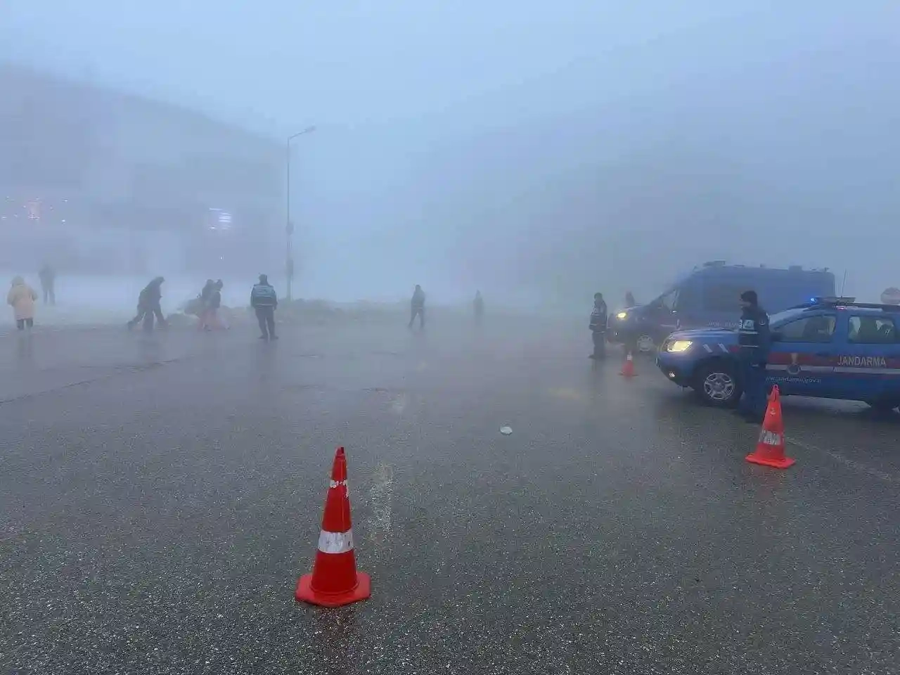 Uludağ'ın zirvesinde etkili olan sis sebebiyle, göz gözü görmüyor. Yoğun sis sebebiyle meydana gelebilecek kazalara karşı, jandarma kayak pistlerini kapattı.