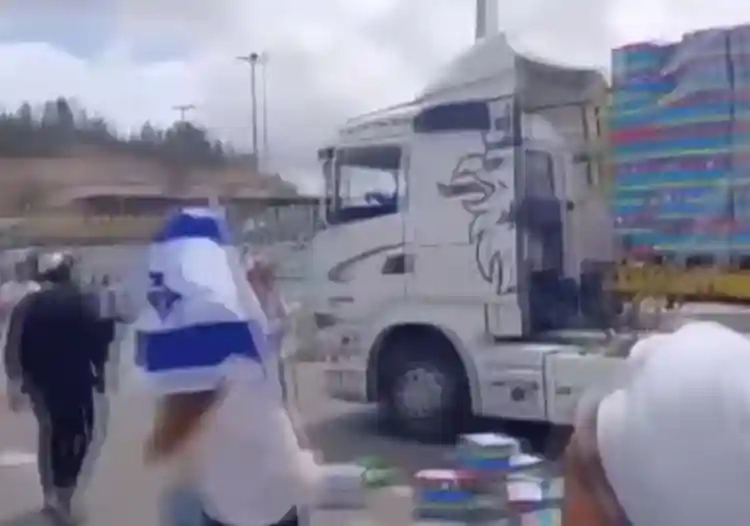 Çevredekiler, tarafından kaydedilen görüntülerde, Yahudi yerleşimcilerin gıda taşıyan kamyona saldırdığı ve yardımları yere attığı görüldü.