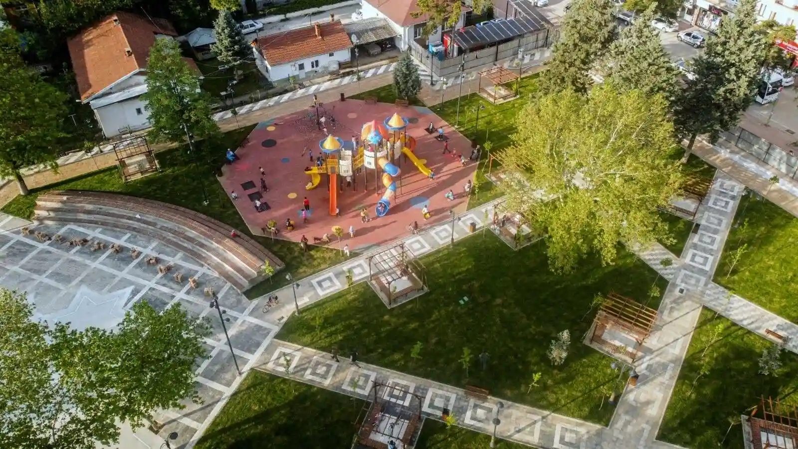 Osmanlı İmparatorluğu'nun ilk başkenti olan Bursa'nın Yenişehir ilçesinde şehir merkezinde bulunan 14 bin metrekarelik alana yapılan Osmangazi Millet Bahçesinin havadan görüntüsü kendine hayran bıraktı.