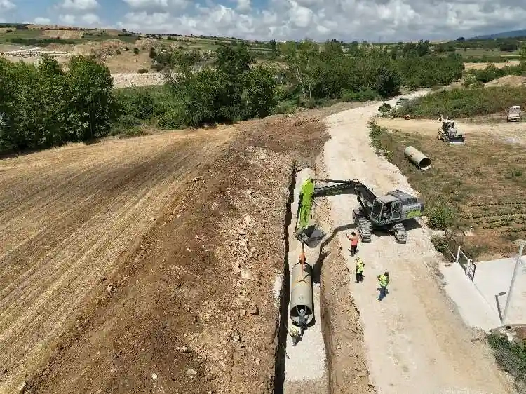 Bursa'nın Karacabey ilçesinde Yeşildere Barajı sulamasına ilişkin çalışmalar DSİ tarafından aralıksız sürüyor.
