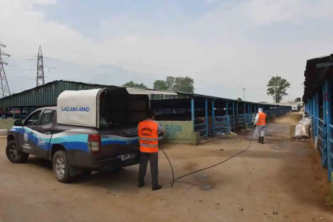 Kurban Bayramı yaklaşırken Yıldırım Belediyesi insan, hayvan ve çevre sağlığının korunması amacıyla, ilçedeki kurban satış alanlarında başlattığı ilaçlama çalışmalarına titizlikle devam ediyor.