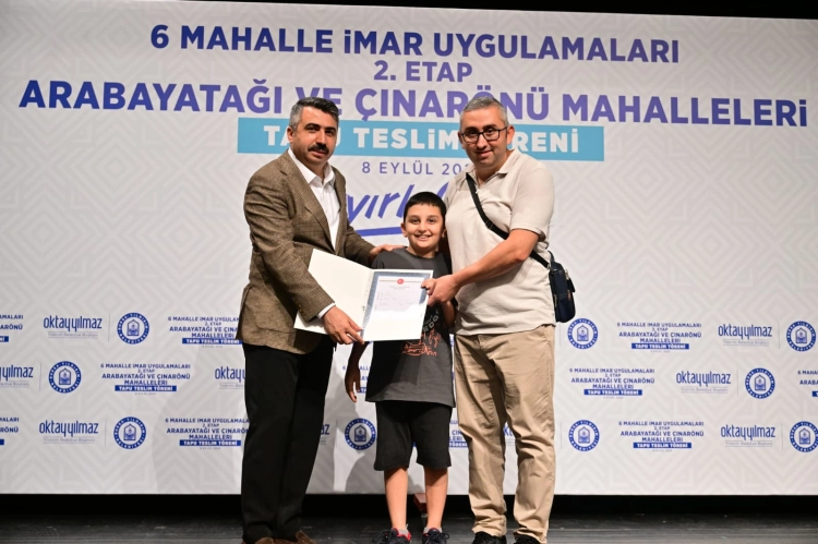 6 mahalle İmar Uygulamaları birinci etabında 251 hak sahibinin tapusunun teslim edildiğini hatırlatan Başkan Yılmaz, “İkinci etapta ise imar uygulamaları sonuçlandı, 4 bin 166 tapuyu bugün sizlere teslim etmenin mutluluğunu yaşıyoruz. Üçüncü ve Dördüncü etaplarda ise belediye olarak sorumluluğumuzdaki tüm teknik çalışmaları tamamladık. 20 bin 500 tapunun tescil süreci Tapu Müdürlüğü’nde devam ediyor. Bu işlemler tamamlandığında bu bölgemizdeki mülkiyet problemi tamamen ortadan kalkacak” dedi.