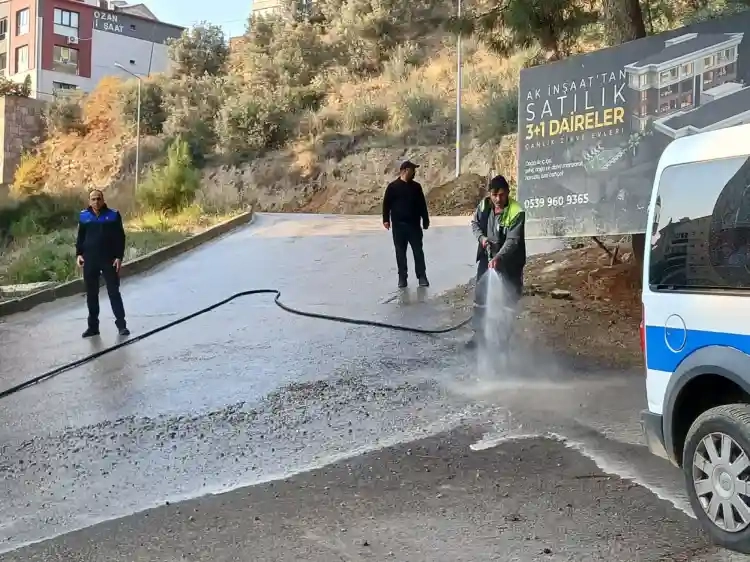 Öte yandan trafikte tehlike durumu olmaması için Park ve Bahçeler Müdürlüğü’ne ait yıkama tankeriyle yol üzerindeki beton temizlendi.