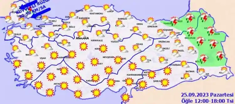 Meteoroloji Genel Müdürlüğü tarafından yapılan son değerlendirmelere göre: Ülkemizin kuzey ve doğu kesimlerinin parçalı yer yer çok bulutlu, Doğu Anadolu’nun kuzeydoğusu, Trabzon, Rize, Artvin, Bitlis ve Van çevreleri ile Kırklareli’nin kıyı ilçelerinin yerel olmak üzere sağanak ve gök gürültülü sağanak yağışlı, diğer yerlerin az bulutlu ve açık geçeceği tahmin ediliyor.