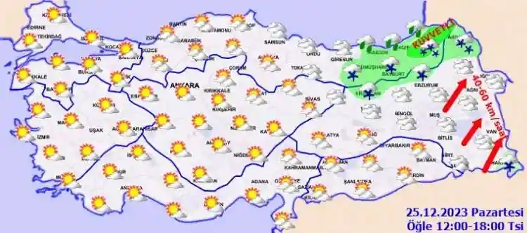 Meteoroloji Genel Müdürlüğü tarafından yapılan son değerlendirmelere göre: Ülkemizin kuzey ve doğu kesimlerinin parçalı ve çok bulutlu, Doğu Karadeniz kıyılarının yağmur ve sağanak, Doğu Karadeniz'in iç kesimleri ile Erzincan, Ardahan ve Hakkari çevrelerinin karla karışık yağmur ve kar yağışlı, diğer yerlerin az bulutlu ve açık geçeceği tahmin ediliyor. Yağışların; Artvin çevrelerinde kuvvetli olması bekleniyor.