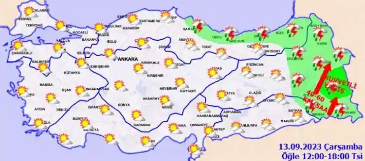 Meteoroloji Genel Müdürlüğü tarafından yapılan son değerlendirmelere göre: Ülkemizin kuzey ve doğu kesimlerinin parçalı yer yer çok bulutlu, Orta ve Doğu Karadeniz kıyıları, Doğu ve Güneydoğu Anadolu’nun doğusu ile Artvin ve Şanlıurfa çevrelerinin yerel olmak üzere sağanak ve gök gürültülü sağanak yağışlı, diğer yerlerin az bulutlu ve açık geçeceği tahmin ediliyor. Yağışların: Van, Bitlis, Siirt, Batman ve Mardin çevreleri ile Diyarbakır’ın güney ve doğusunda yer yer kuvvetli olması bekleniyor.