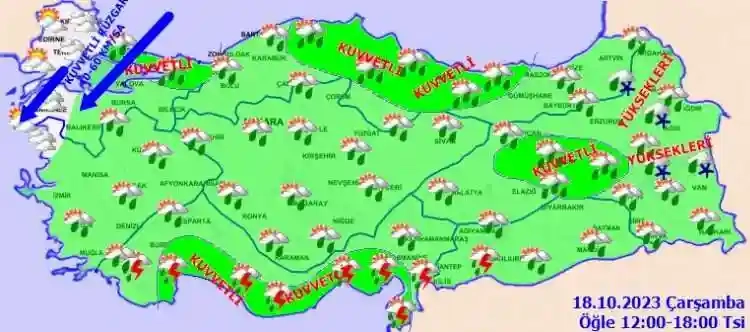 KUVVETLİ YAĞIŞ UYARISI: İstanbul ile kuzey kesimleri başta olmak üzere Kocaeli, Sakarya çevreleri, Samsun, Sinop, Kastamonu, Tokat, Amasya, Ordu, Giresun, Trabzon, Rize, Artvin'in kıyı kesimleri, Antalya, Isparta'nın güneyi, Burdur'un doğusu, Mersin, Adana, Osmaniye, Tunceli, Muş, Bingöl çevreleri, Hatay’ın batısı ile Kahramanmaraş’ın Andırın ilçesinde yerel olarak kuvvetli olacağı tahmin edildiğinden sel, su baskını, ulaşımda aksamalar gibi olumsuzluklara karşı dikkatli ve tedbirli olunması gerekmektedir.