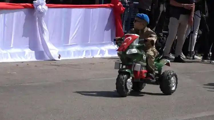 Resmi geçit sırasında akülü motoruna bağladığı çakar sistemiyle askerlerin yanında geçite dahil olan çocuk, geçiş sırasında dikkatleri üzerine çekti. Asker kıyafetli çocuğu gören vatandaşlar, o anları cep telefonlarıyla ölümsüzleştirdi.