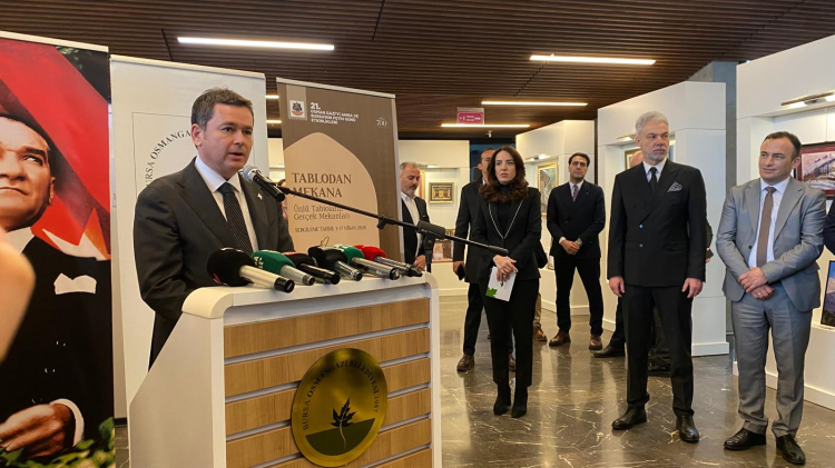 Sergide yer alan eserlerin uluslararası düzeyde ilgi gördüğünü ifade eden Aydın, “Burada sergilenen eserlerden bazılarının yüksek bedellerle alıcı bulması, bu çalışmaların ne kadar kıymetli olduğunu gösteriyor” şeklinde konuştu.Bursa’nın 1326 yılında Orhan Gazi tarafından fethedildiğini hatırlatan Aydın, “Bursa, kan dökülmeden fethedilmiş ve sonrasında barış ile kardeşlik ortamı sağlanmıştır. Bu anlayış Osmanlı’nın temellerini oluşturmuştur” ifadelerini kullandı.